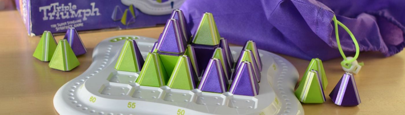 Triple Triumph is a simple, unassuming little abstract game, but I can see us keeping it in the game rotation for a few more years. There’s not much to it in terms of strategic play instead everyone is really just trying to figure out where to put their pieces for maximum score. Nonetheless, it’s a nice little introduction to abstract games for playing with younger kids.